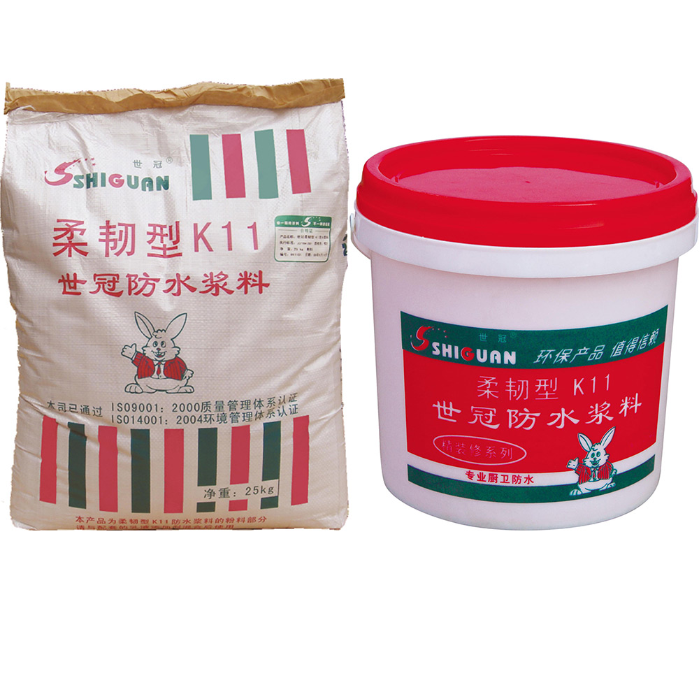 世冠柔韧型防水涂料是双组份水坭基防水涂料,具有良好的柔韧性和坚韧度。粉料和添加固化液按比例混合搅拌均匀后,涂刷于水坭底材上,形成一层坚韧的弹性防水漆膜。该漆膜具有良好的粘附性与底材紧密相连,永久结合,阻止了水的渗透,并且漆膜具有弹性坚韧永不受底材轻微震动或伸缩(运动)时的破坏,从而达到有效抗震防水效果。